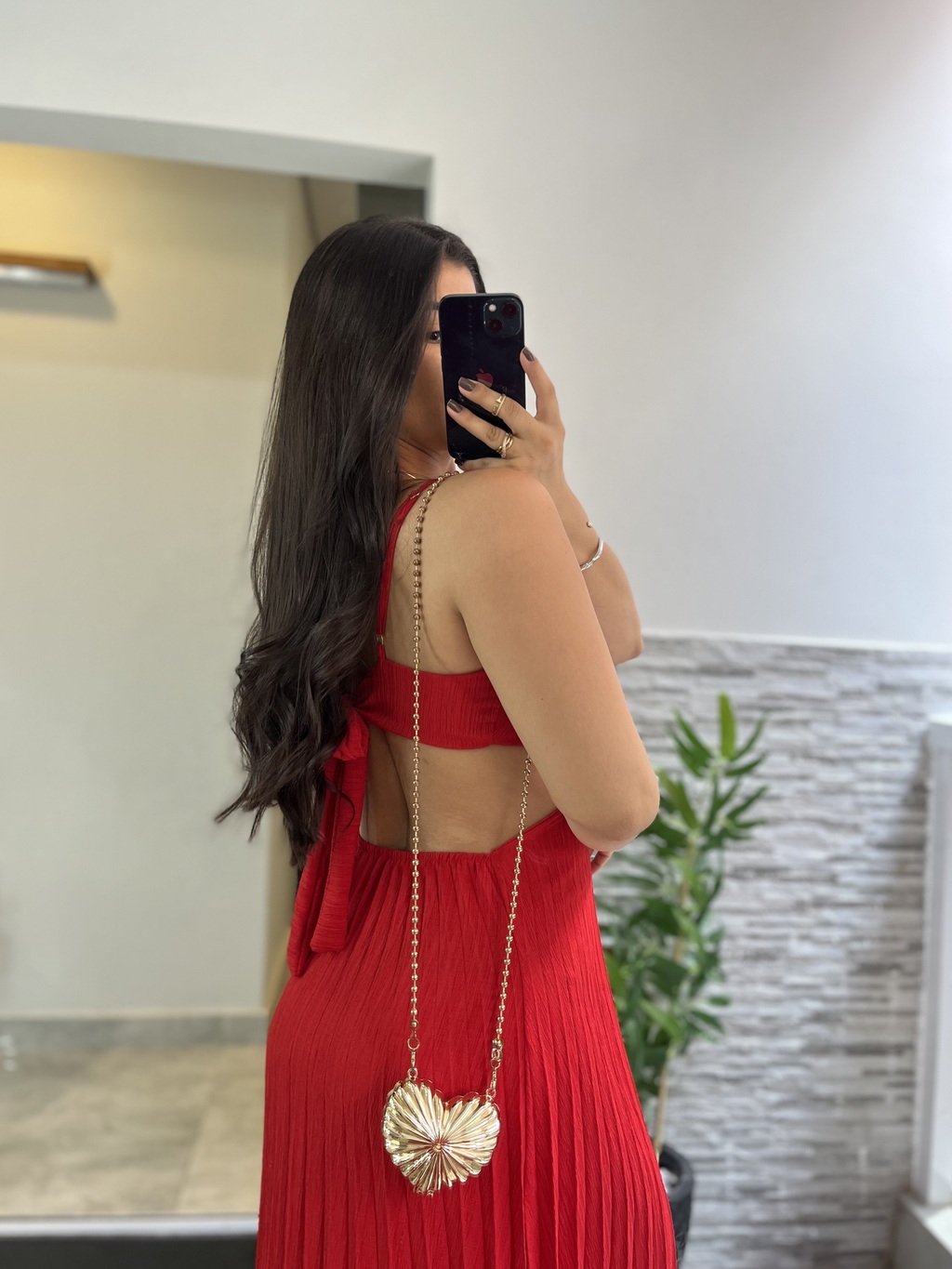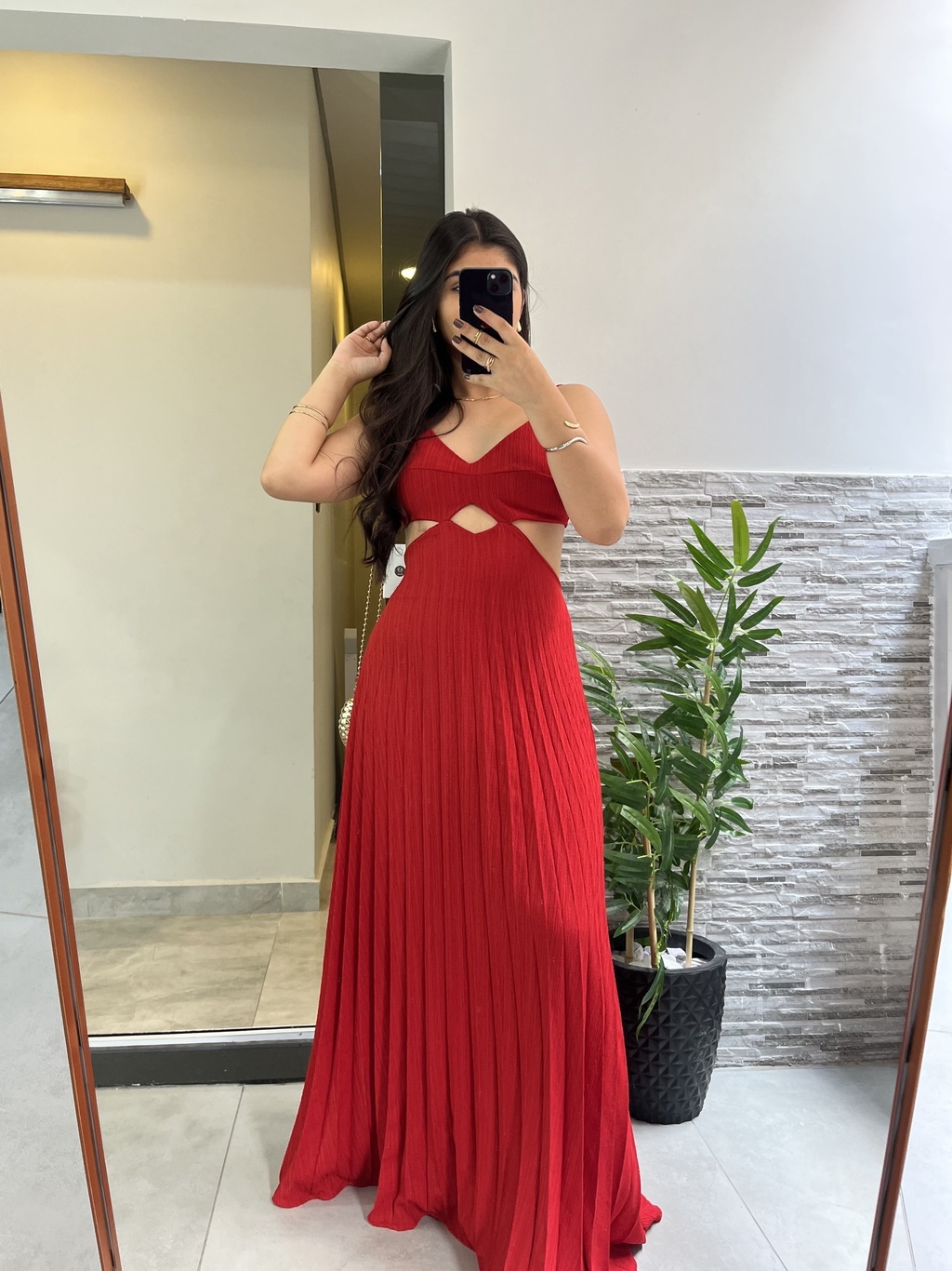 Confeccionado no tecido plissado, com elástico na cintura e regulável nas costas e alça.